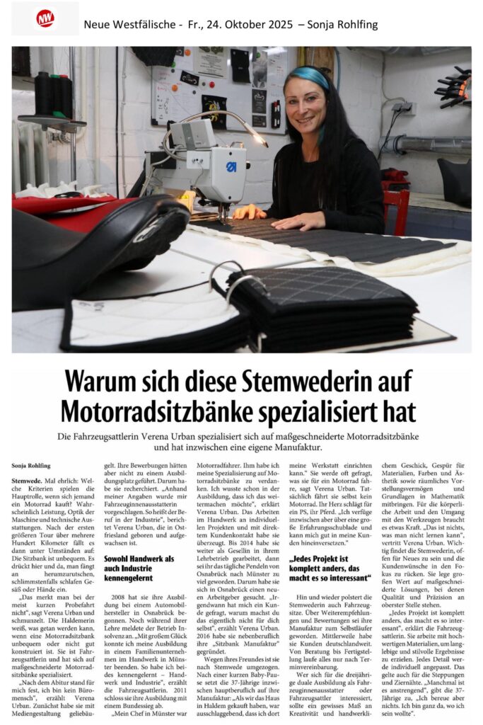 Die Sitzbank Manufaktur in der Zeitung Dez. 10, 2025 | News Ende Oktober 2025 wurde ein Artikel über mich und meine Manufaktur in der Zeitung Neue Westfälische veröffentlicht. Der Artikel erschien in der Print-Ausgabe der Zeitung und kann nun auch in einem Online-Beitrag gelesen werden. Hier geht’s zum Beitrag